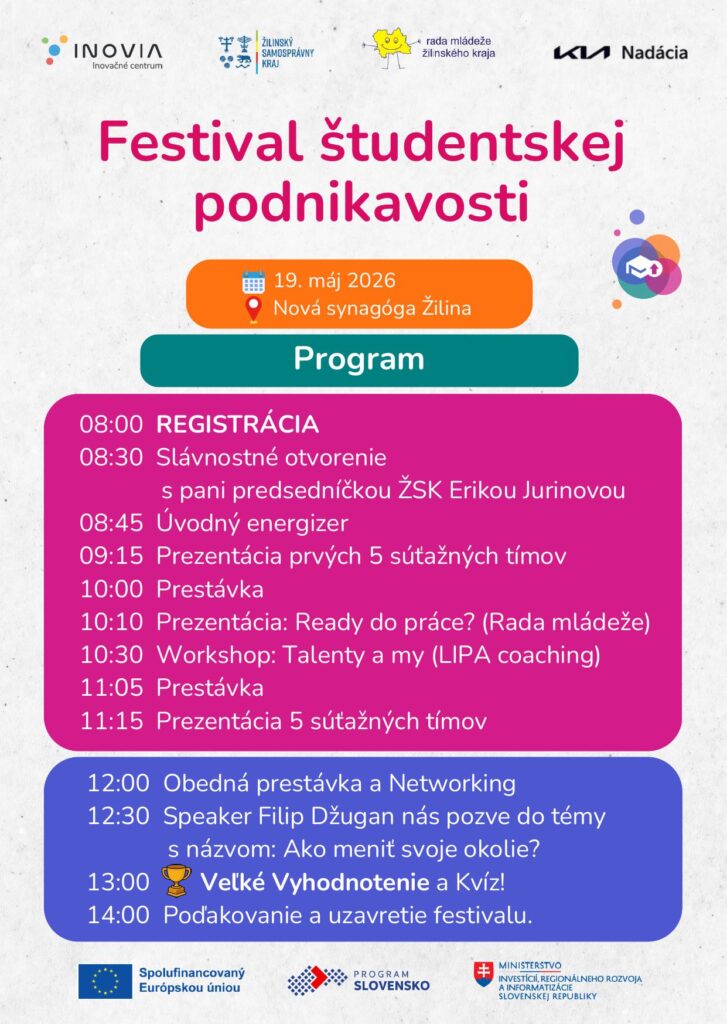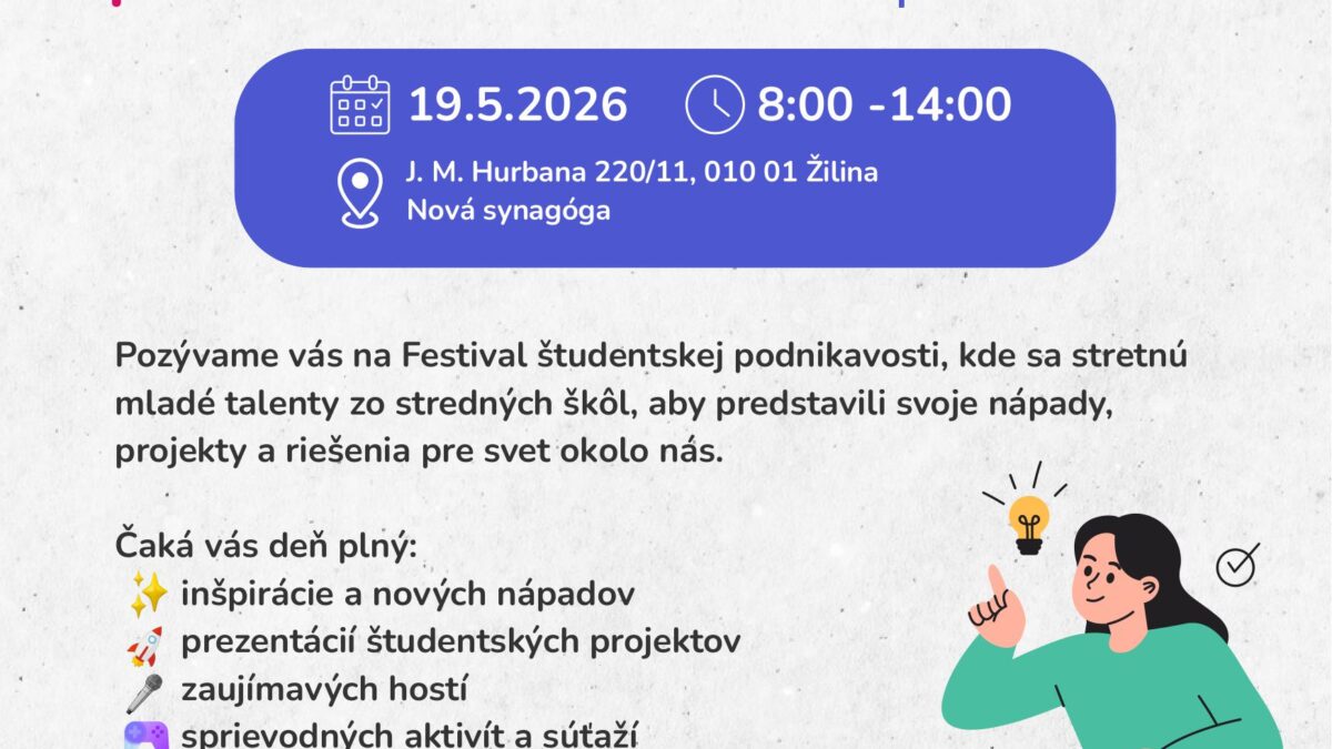 20. 4. 2026Účastníkov čaká finále 15. ročníka súťaže Stredoškolský podnikateľský zámer.